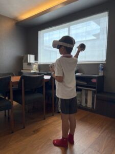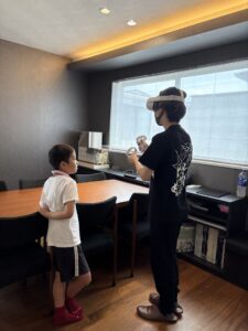 まるで本物の恐竜が目の前にいるかのような迫力満点のVR体験に、子供たちは大興奮!